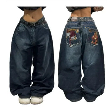 Amerikan Retro Geniş Paça Kot Pantolon