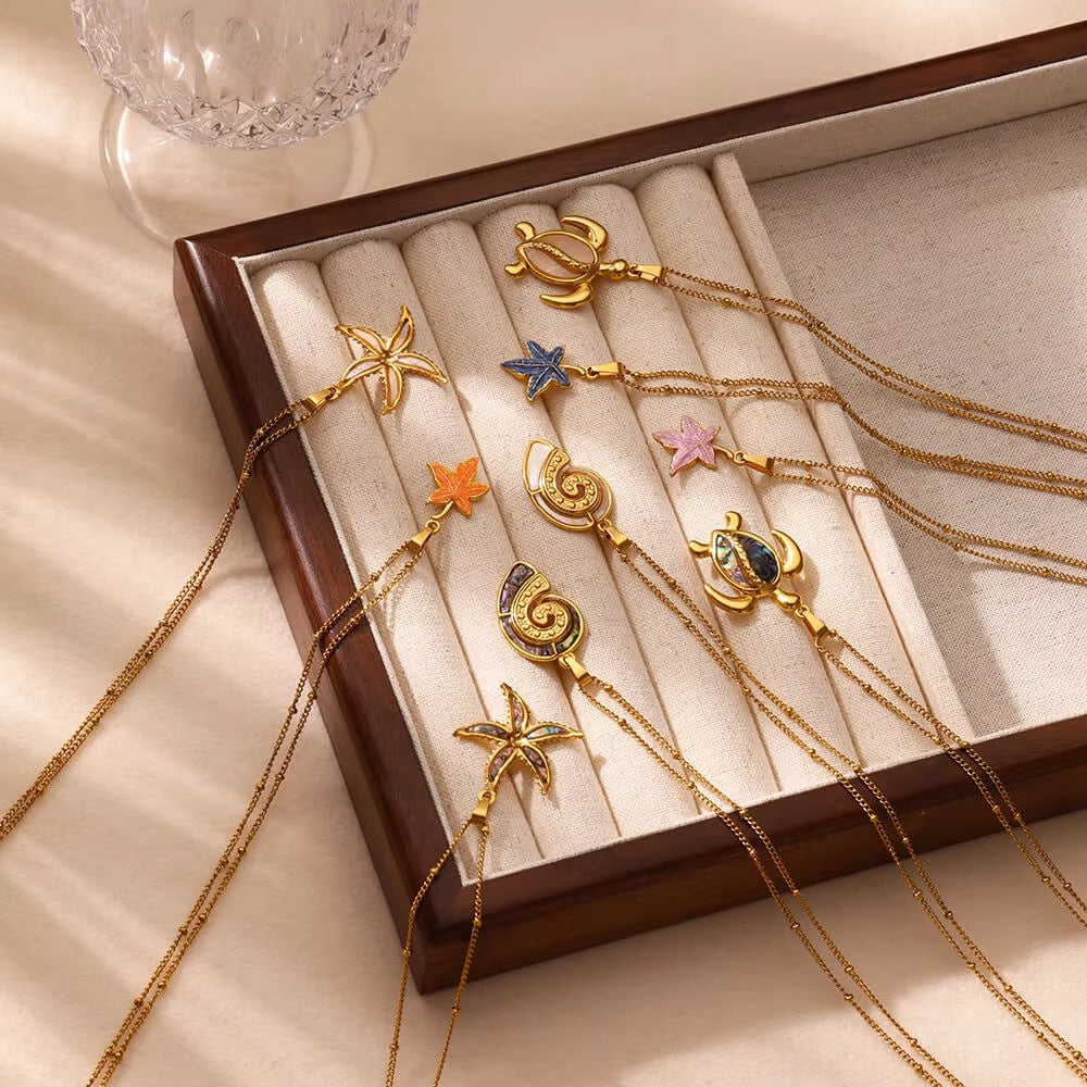 Bu paslanmaz çelik kolye, sevimli deniz kaplumbağası ve “Okyanus Kalbi” tasarımıyla öne çıkar. Hem günlük kullanım için uygun hem de sevdiklerinize anlamlı bir hediye seçeneğidir.