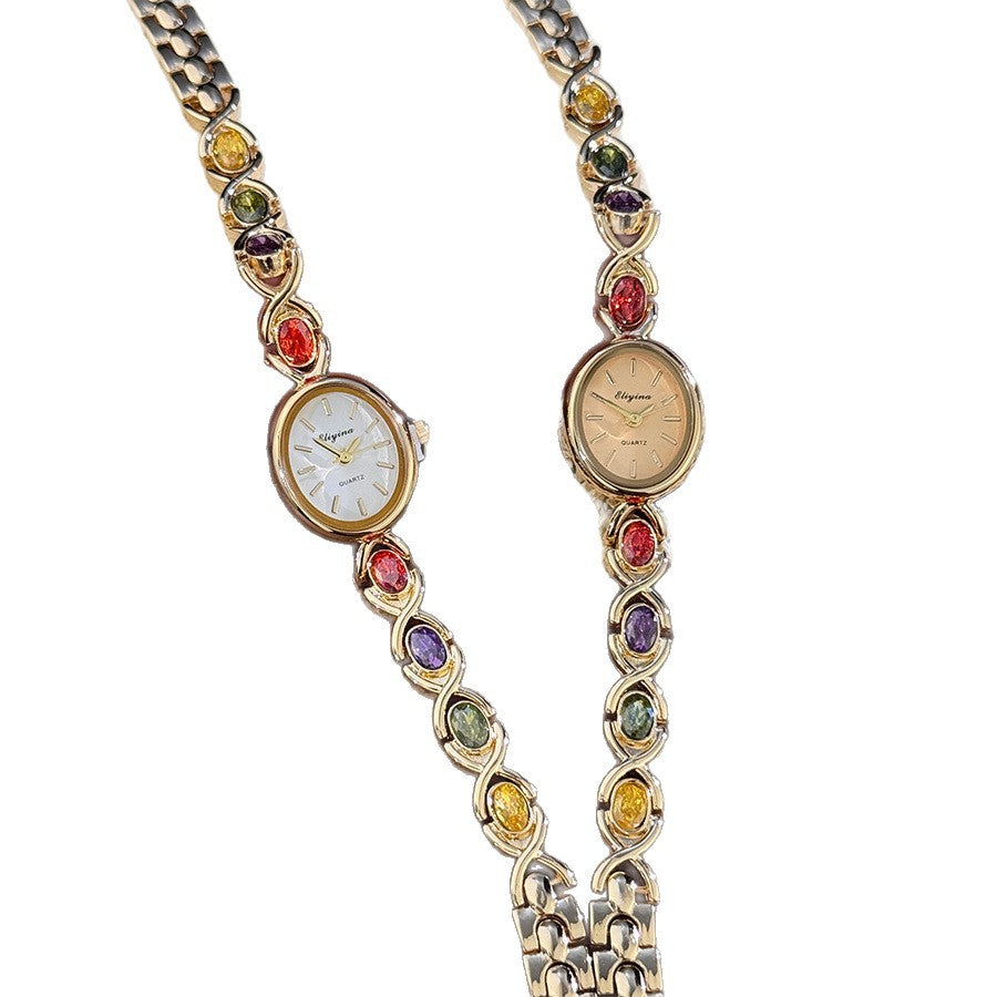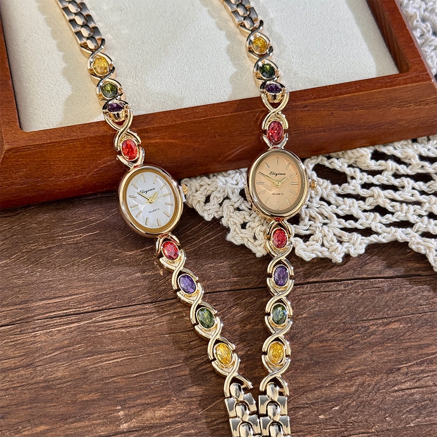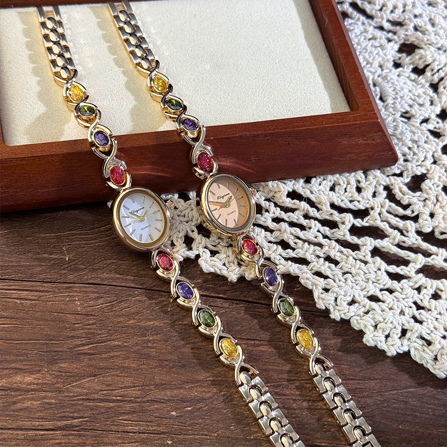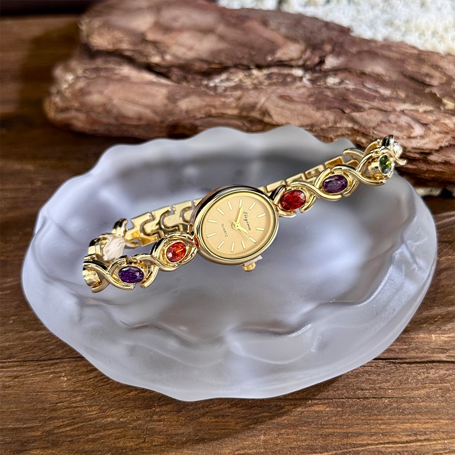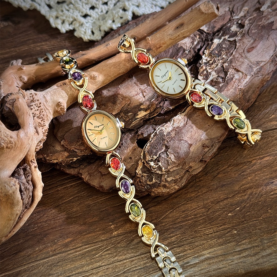 Bu oval kadranlı kadın saati, taş ve elmas detaylarıyla zarif bir görünüm sunar. Kompakt tasarımı sayesinde hem günlük kullanım hem de özel günler için idealdir ve doğrudan fabrikadan uygun fiyatla sunulur.